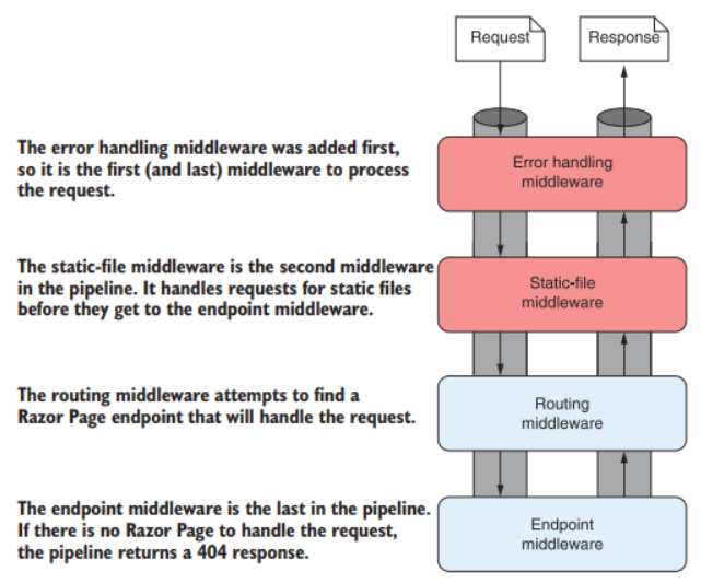 Теперь создадим конвейер для страниц Razor. Проговорим еще раз: порядок, в котором вызываются методы Use в методе Configure, соответствует порядку компонентов в конвейере.