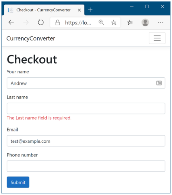 Используя размеченный класс, тег-хелперы и небольшое количество HTML-кода, получим примерно следующую форму: