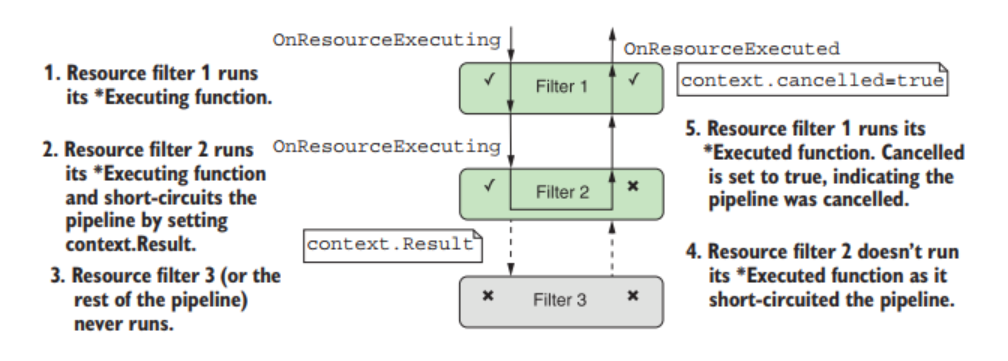 Функции фильтров ресурсов *Executed из более ранних фильтров запускаются с context.Cancelled = true.IAlwaysRunResultFilter запускается перед выполнением IActionResult |