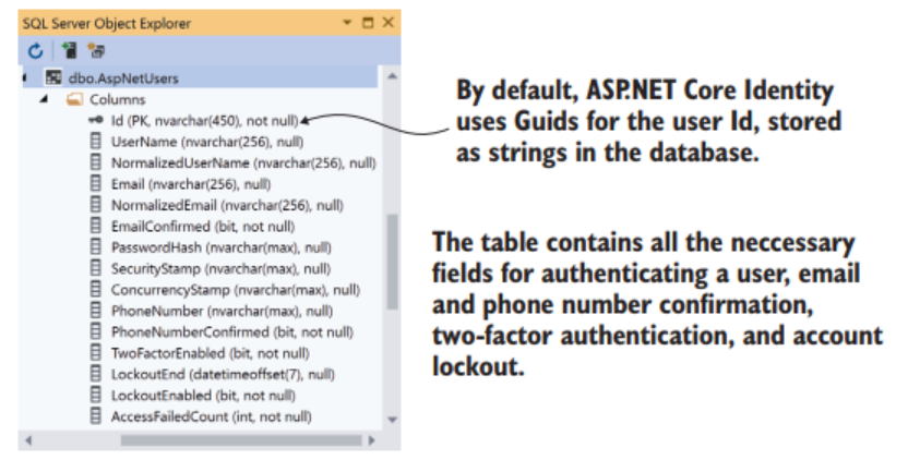 По умолчанию Identity использует EF Core для хранения данных пользователей. Он предоставляет класс IdentityDbContext, который может выступать базовым для ApplicationDbContext приложения. IdentityUser используется в нем в качестве сущности пользователя.