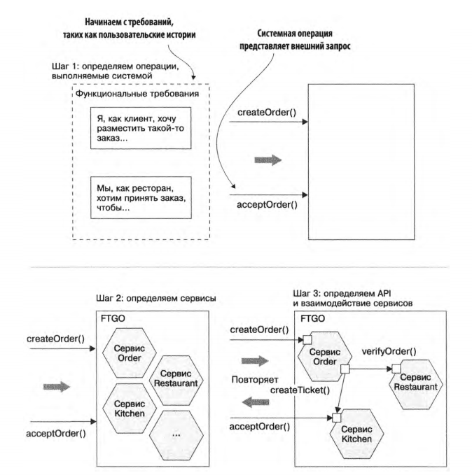 - Описание API для каждого сервиса. Для этого сервисам назначаются все системные операции, определенные на первом шаге. Операцию можно реализовать в виде одного или нескольких сервисов. В последнем случае нужно решить, как они будут взаимодействовать между сосбой. Также нужно выбрать механизмы IPC, чтобы реализовать API каждого сервиса.