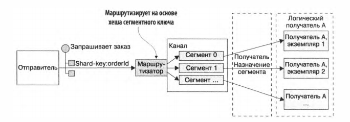 - Брокер сопоставляет сегмент одному экземпляру получателя.