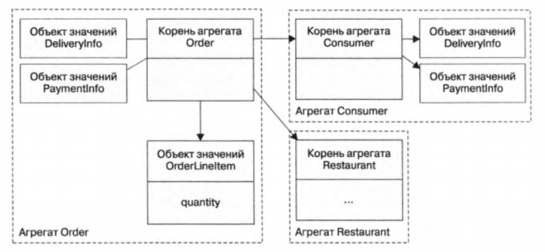 Обновление целого агрегата, а не отдельных его частей решает проблемы с согласованностью. Операции обновления вызываются для корня агрегата, который обеспечивает соблюдение инвариантов.