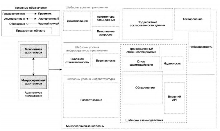 Основные группы шаблонов: - Шаблоны для разбиения приложения на микросервисы